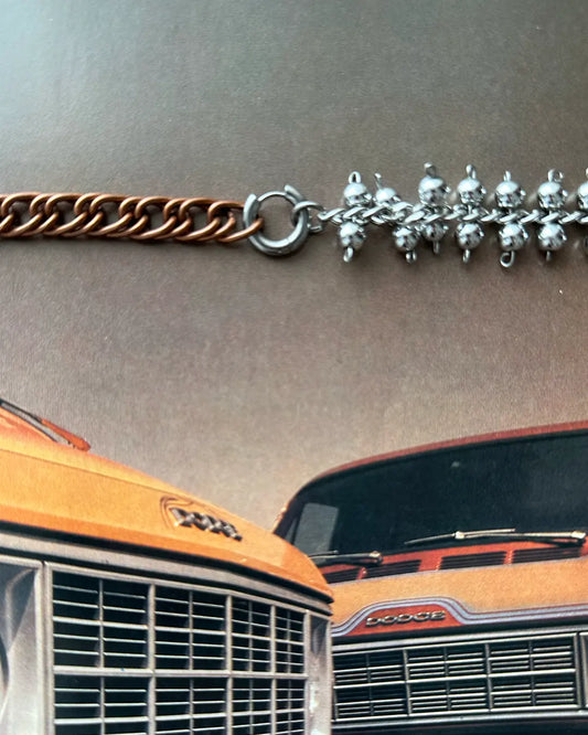 Collier mixte belou - chaine acier, bronze & perles argentées
